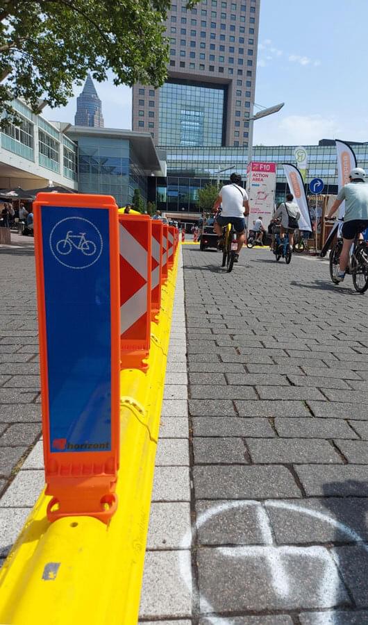 horizont ścieżka rowerowa stanowi rozwiązanie dla wyzwań związanych z elastyczną lub stałą integracją ścieżek rowerowych z ruchem w centrum miasta w krótkim czasie. Połączenie barier antykolizyjnych i stojaków odblaskowych, tzw. Leitboys, zostało przetestowane przez Federalny Instytut Badań Autostrad (BASt) i jest zgodne z RSA21. Ścieżka rowerowa sprawia, że jazda na rowerze w centrum miasta jest bezpieczniejsza i przyjemniejsza.