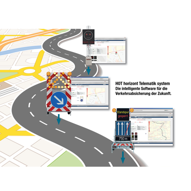 System lokalizacji GPS do monitorowania mobilnych znaków drogowych oraz do monitorowania i sterowania znakami ostrzegawczymi i znakami wolnostojącymi. HOT-Box obejmuje instalację fabryczną dla nowych zakupów, a także demonstrację, rejestrację i zgłoszenie mobilnych znaków ostrzegawczych do Hessen Mobil.