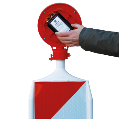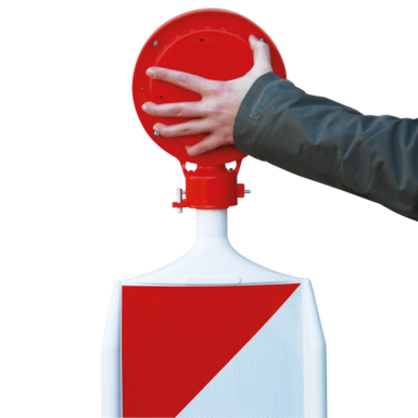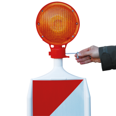 Opracowaliśmy to światło ostrzegawcze specjalnie dla naszego odwracalnego systemu ostrzegawczego "WD" - światło jest umieszczane na zawleczce bezpieczeństwa i zabezpieczane przez obrócenie go o 45 stopni.