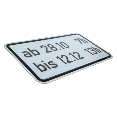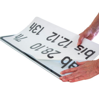 Folia nakładkowa w rozmiarze (wys. x szer.) 280x550 mm zmienia blankiet znaku w wymagany znak drogowy do oznakowania tymczasowego. Przezroczysta, zadrukowana folia jest cięta na wymiar i może być nakładana na mokro lub sucho na wykrój znaku o wymiarach (wys. x szer.) 330 x 600 mm. Po użyciu można ją usunąć bez pozostawiania śladów.