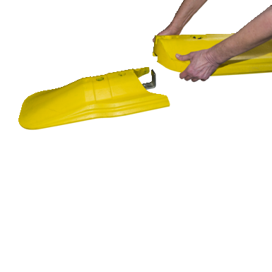 Fazowana końcówka A do progów zwalniających, dostępna w kolorze żółtym lub białym, posiada hak sprzęgający. Jest wykonana z materiału pochodzącego z recyklingu, podobnie jak sam próg zwalniający, i jest wyposażona w system antypoślizgowy ARS.