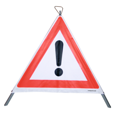 Składany trójkąt z wytrzymałą ramą ze stali ocynkowanej i mechanizmem napinającym przypominającym parasol. Do szybkiego zabezpieczania miejsc wypadków i stref niebezpiecznych.