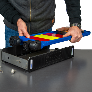 Solidna podstawa ze stali nierdzewnej z plastikowymi szynami do układania w stosy. Nowa podstawa umożliwia bezpieczne ustawienie kilku lamp FlashMax jedna na drugiej. Dodatkowe kołki antypoślizgowe zapewniają bezpieczne oparcie na gładkich powierzchniach i dodatkowo zwiększają stabilność podczas mijania pojazdów.
