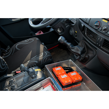 Dzięki kompaktowej konstrukcji, StreetFlash jest łatwy do schowania, dzięki czemu jest zawsze gotowy do użycia i może być transportowany w sposób oszczędzający miejsce. 6 modułów/świateł ostrzegawczych zawartych w zestawie jest przymocowanych do uchwytu do przenoszenia/ładowania za pomocą silnego magnesu i jest ładowanych za pomocą dostarczonych kabli 12/24 V i 230 V.