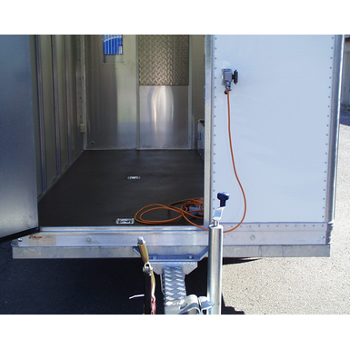 Aby zabezpieczyć się przed kradzieżą i wpływem warunków atmosferycznych, można transportować materiały w przyczepie skrzyniowej z optymalną ochroną. Dzięki dołączonemu znakowi ostrzegawczemu (VZ616 zgodnie ze znakami ostrzegawczymi TL 97) przyczepa służy również do zabezpieczenia placu budowy.