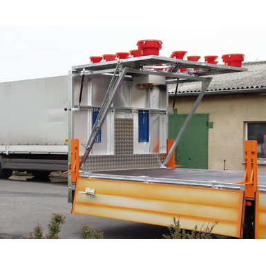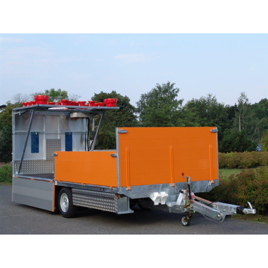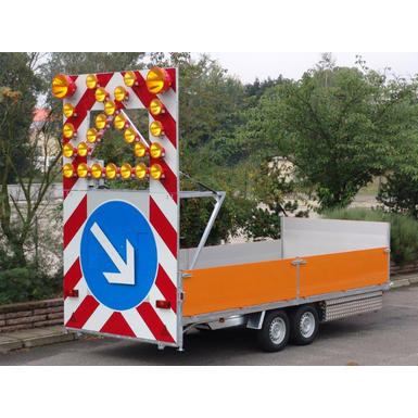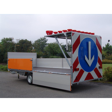 z zamontowanym z tyłu panelem bariery FA1 (dla autostrad) do transportu barier zderzeniowych, na przykład.